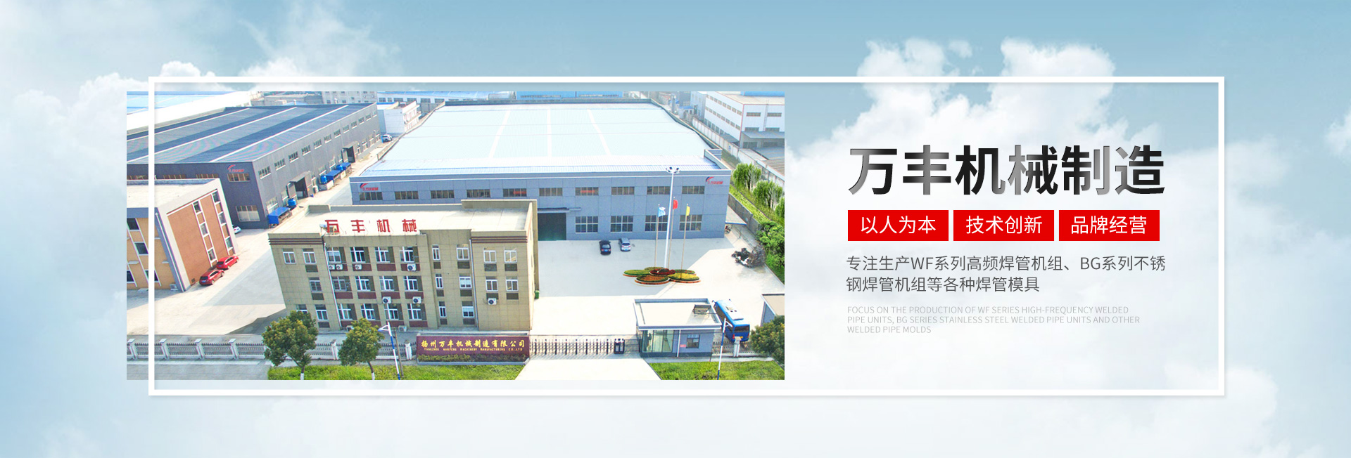 揚州萬豐機械制造有限公司坐落于揚州北郊槐泗工業(yè)園區(qū),占地25000平方米,交通便利,是集開發(fā)、制造、銷售為一 體的焊管機組、模具制造企業(yè)。主要生產(chǎn)WF系列高頻焊管機組;BG系列不銹鋼焊管機組;GW系列型材冷彎成型機組;CQ系列車圈機以及各種焊管模具(12機組至508機組)型材模具。采用ISO9001: 2000國際質(zhì)量標準,擁有完善的質(zhì)量保證體系、嚴格的管理制度、先進的檢測手段和完善的售后服務隊伍。公司秉承“以人為本、技術創(chuàng)新、品牌經(jīng)營、追求品質(zhì)”的發(fā)展理念。堅持質(zhì)量立企和品牌興企的發(fā)展戰(zhàn)略與時俱 進,將人才和先進的管理、完善的設計與服務相結合。不斷開發(fā)與創(chuàng)新使我們的產(chǎn)品始終處于同行前列地位,同時也得到國內(nèi)了外廣大用戶的信賴和盛贊。         成功始于誠信,實力鑄就品牌,服務創(chuàng)造未來。二十一世紀是科技經(jīng)濟高速發(fā)展的時代。競爭與發(fā)展并存,機遇與挑戰(zhàn)同在。萬豐人將以“忠誠、務實、拼搏、創(chuàng)新”為企業(yè)精神,以敏銳的目光昂揚的姿勢面向一個更加廣闊的市場和未來。